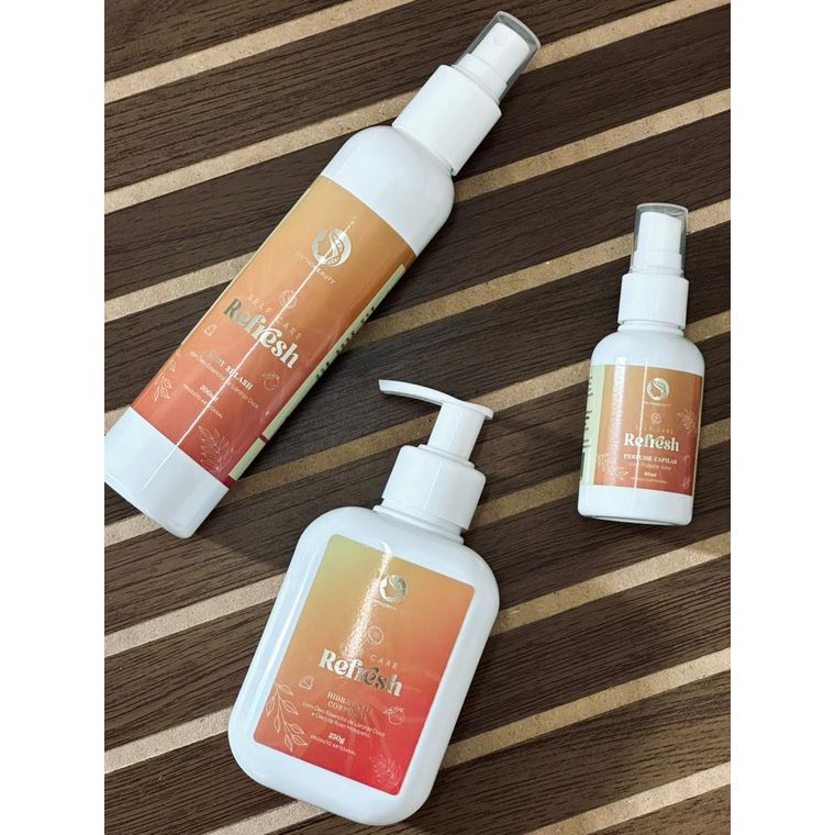 Com fragrância exclusiva, esse kit poderoso vem com: Body Splash refrescante 200ml, Hidratante corporal nutritivo 250g e Perfume capilar com proteção solar 60ml